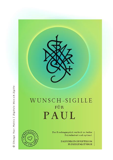 Sobald ich deinen Wunsch erhalte, erschaffe ich deine individuelle Wunsch-Sigille basierend auf: